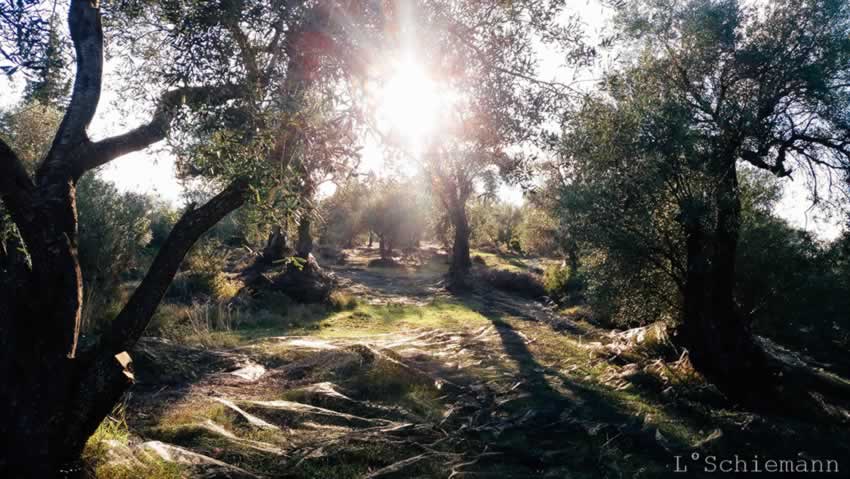 Wenn man durch die silbrig schimmernden Olivenhaine spaziert, spürt man die Kraft der uralten knorrigen Bäume, die seit Jahrhunderten Wind und Wetter standhalten und deren Früchte nicht nur den Inselbewohnern wertvolle Naturalien sind. Diese Bäume haben eine lange Geschichte, die bis ins 16. Jahrhundert zurückgeht. Die Venezianer besiedelten damals die Insel und zahlten jedem Korfioten eine Prämie, der einen Olivenbaum einpflanzte. Das taten sehr viele Bauern und noch heute ist diese Erbschaft überall zu sehen. Kaum ein Korfiote kommt ohne Olivenöl über den Tag. Er träufelt es über sein Brot, kocht damit sein Essen und nutzt es zur Hautpflege. Die korfiotischen Olivenbäume sind teilweise so groß, dass die Inselbewohner die Oliven nicht direkt von den Bäumen pflücken können, sondern kreative Lösungen finden mussten.