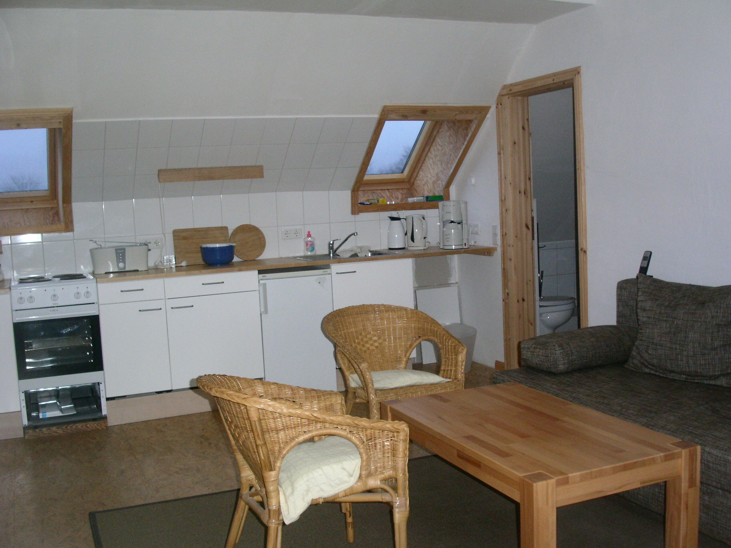 Das "Sonnenhaus" wurde 2011 ausgebaut. Im 1. Obergeschoss befinden sich drei 2-Bett-Zimmer mit jeweils eigenem Duschbad. Eine große Wohnküche mit Schlafsofa steht für alle Gäste bereit. Es besteht die Möglichkeit, die gesamte 1. Etage als Wohnung für bis zu 6 Personen zu mieten. Im 2. Obergeschoss befindet sich eine weitere Ferienwohnung für bis zu vier Personen. Sie verfügt über ein 2-Bett- Zimmer und ein kleines Doppelzimmer (Doppelbett 140 cm breit), ein großzügiges Duschbad und eine voll eingerichtete Wohnküche.