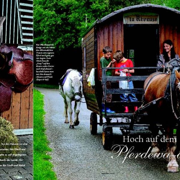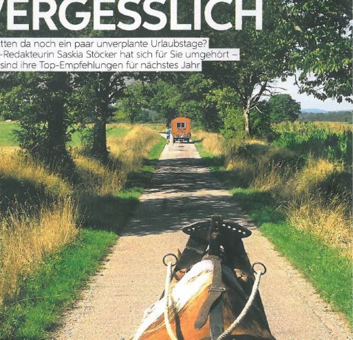 Saskia Stöcker / freundin21.06.2019Mit dem Pferdewagen reisen - weil man damit noch viel näher an der Natur ist als mit dem Wohnmobil. Lesen Sie weiter im pdf.Hoch auf dem grünen Wagen