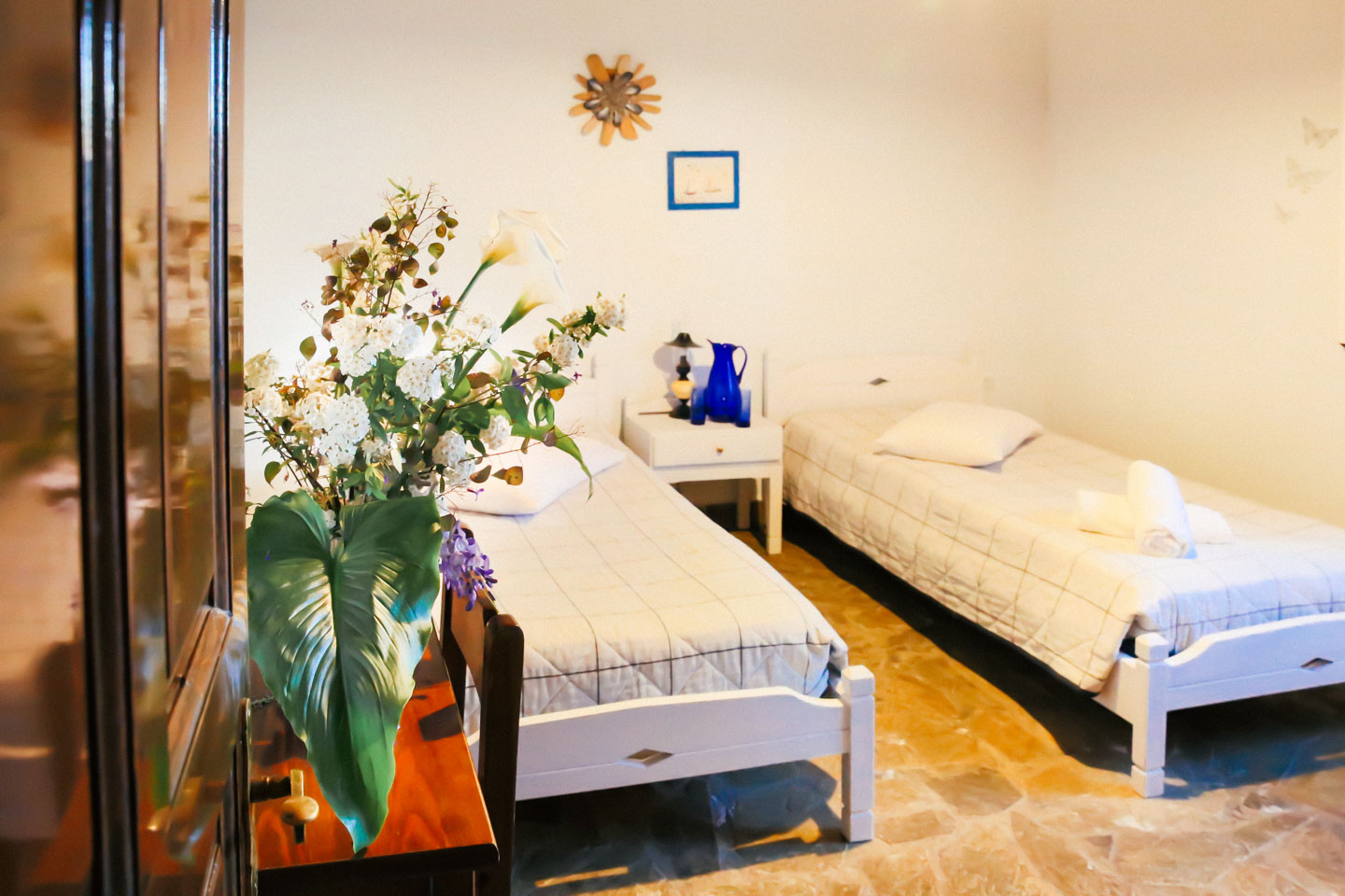 Das geräumige Ferienhaus Villa Platani ist ideal für Familien und gemeinsam reisende Freunde, da es auf drei Zimmer verteilt Betten für 6 Personen bietet. Ein weitläufiger Garten sowie die liebevolle Gestaltung des Innen- und Außenbereichs und die Nähe zum Meer sorgen für unvergessliche Ferien im Süden der Insel Korfu.