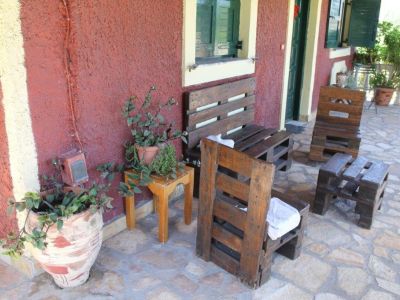 Die Villa und der Garten wurden in liebevoller Kleinarbeit von den Besitzern als Wochenendhaus gebaut. Gehen Sie bei Ihrem Korfu-Urlaub auf Entdeckungstour. Viele Einrichtungsstücke, die individuellen Fliesenböden, die Maurerarbeiten, die Fenster mit den grünen Läden - fast alles in der Villa Platani wurde mit viel handwerklichem Geschick hergestellt. Auffällig ist der große, überdachte Grillbereich mit Esstisch und Stühlen. Ruings um das Haus verläuft eine offene Veranda. Auch hier auf der Veranda finden Sie wieder Beispiele der Handwerkskunst Ihrer Gastgeber - zum Beispiel eine aus Paletten geschmackvoll gestaltete Sitzgarnitur bestehend aus Stühlen, Tischchen und Bank. Die drei schlicht eingerichteten Schlafzimmer bieten Platz für bis zu 6 Personen - in der Villa Platani fühlen sich Familien mit Kindern genauso wohl wie gemeinsam reisende Freunde. Neu für die Saison 2024 ist der Pool - jederzeit für eine Erfrischung gut. Und danach entspannen im schattigen Garten oder auf zum nahe gelegenen Strand (ca. 750 m).