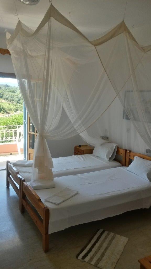 5 Wohnungen (ca. 36 qm, für 3-5 Personen) mit Flur, 2 Schlafzimmern, Kühlschrank, Bad mit DU/WC und großem Balkon/Terrasse. - Weitere Studios stehen im Haus Xenia (ca. 300m entfernt) und im Haus Spyros zur Verfügung (ca. 130m entfernt).