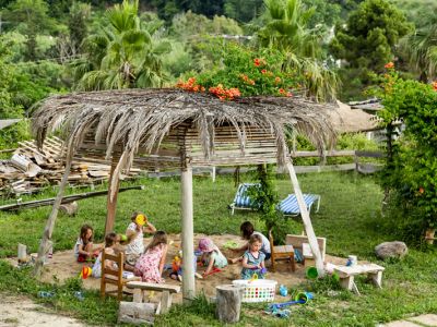 Für Kinder- Das Kinderprogramm (11 Std./Woche, 3-12 Jahre) ist für unsere Gäste inklusive (Saisonzeiten siehe Leistungen). Kinder wollen nicht nur unterhalten werden, sondern auch selbst Hand anlegen. Das Kinderprogramm gestalten wir spielerisch mit einem methodischen Aufbau, viel Eigeninitiative und Fantasie. Wir wandern durch die Olivenhaine, sammeln Naturmaterialien, Feuerholz, suchen Tiere, wie Landschildkröten, die wir beobachten. Mit einem Solarkocher lernen wir alternative Energien einzusetzen und kochen leckere Sachen. Während die Kinder mit Gleichgesinnten beim Kinderprogramm spielen, finden die Eltern Zeit, ihre eigenen Urlaubswünsche zu realisieren. Bitte beachten Sie, dass Kinder nur am Programm teilnehmen können, wenn sie "windelfrei" sind.
