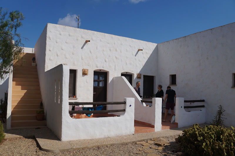 Während der gesamten Wanderreise wohnen Sie in der Casa rural ecológica. Dieses typisch spanische Gästehaus ist ein mehr als hundert Jahre altes Gehöft im Naturpark Cabo de Gata, das nach ökologischen Kriterien im traditionellen Stil instandgesetzt und erweitert wurde. Es ist mit allem notwendigen Komfort ausgestattet und bietet so die besten Voraussetzungen in wunderschöner Umgebung einen erholsamen Wanderurlaub in Spanien zu verbringen. Die fünf Zimmer verfügen über Bad und eigene Terrasse mit einem freien Blick über das weite Tal. Alle haben Fußbodenheizung, die sich hauptsächlich aus Solarenergie speist. Außerdem bietet das Haus seinen Gästen eine Küche mit Essraum und gemeinsamer Terrasse, auf der sich ein Holzofen befindet.
