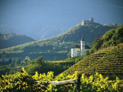 Heute erwartet Sie eine faszinierende Wanderung auf dem Burgenweg. Auf interessanten Steigen geht es von Festung zu Festung, wo Sie vielfältige historische Baukunst bewundern können. Nachmittags durchwandern Sie das Gebiet der Eislöcher, ein Naturphänomen - hier können Sie sogar im Hochsommer Eiszapfen finden. Vorbei am St. Georgsturm und durch Weinreben erwartet Sie am Ende Ihres Wandertages der Kalterer See. Übernachtung in Kaltern