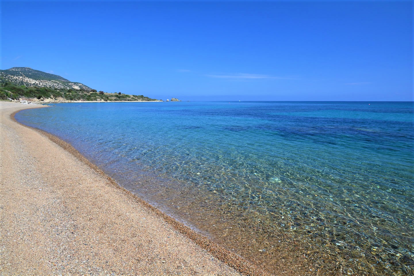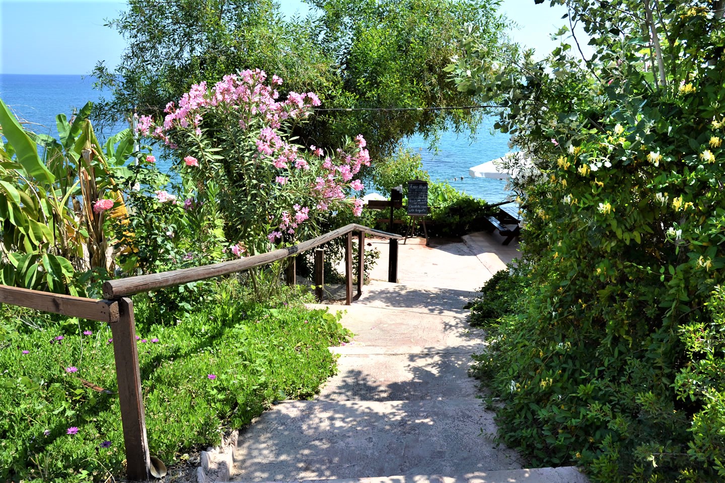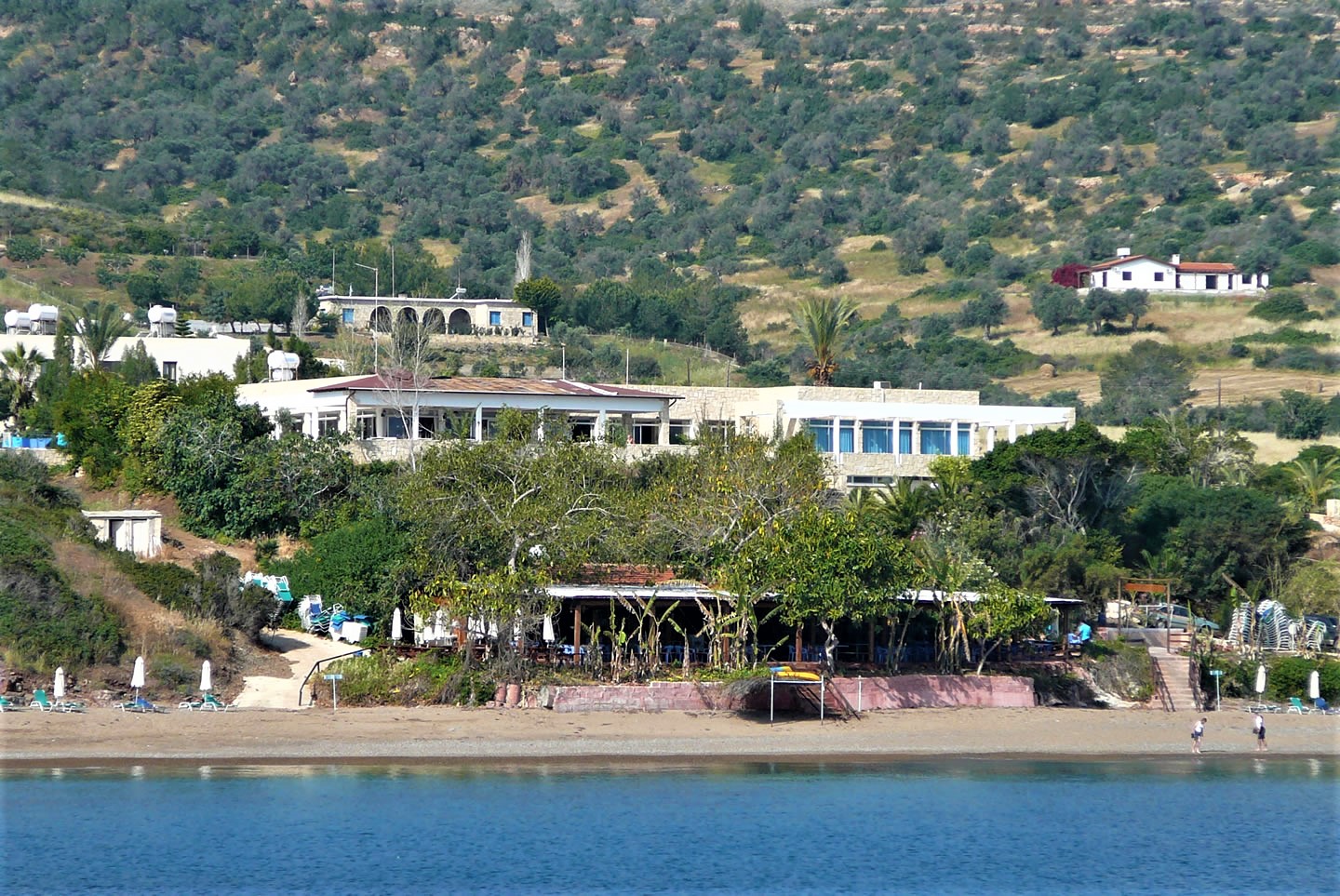 Am Strand (Steine) lassen sich Liegen und Wassersportgeräte ausleihen, letzteres ist dank des kristallklaren Wassers ein besonderes Vergnügen.