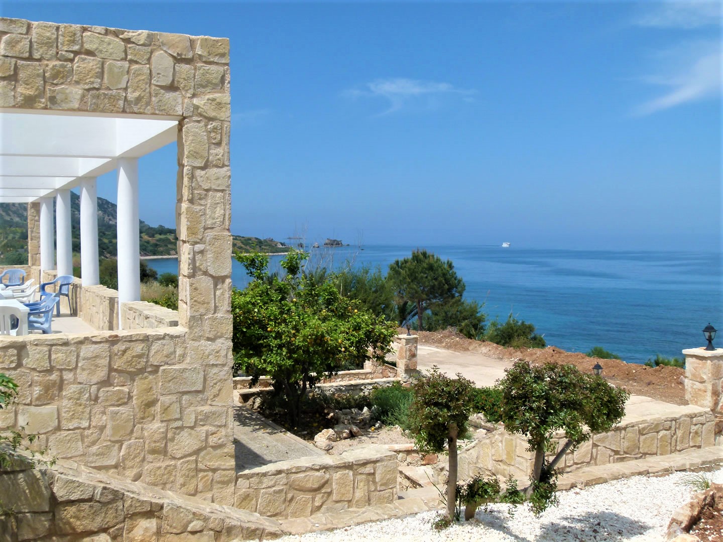 Die Mahlzeiten werden auf der Terrasse eingenommen: morgens mit Blick auf das türkisfarbene Meer, abends mit Sonnenuntergang und Lichterfunkeln. Die zumeist zypriotischen Gerichte werden jeden Tag frisch zubereitet. Das üppige und vielseitige Büffet bietet eine große Auswahl für Vegetarier, Fleisch- und Fischliebhaber gleichermaßen.